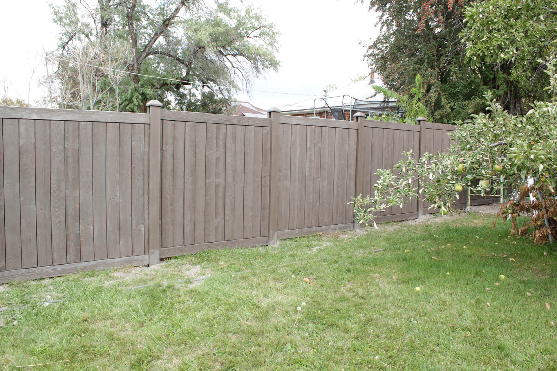 Available in four realistic wood tones, the Sherwood fence blends seamlessly with your landscape and architecture. From rich cedar hues to weathered gray finishes, every color delivers lasting appeal without the need for staining or painting.